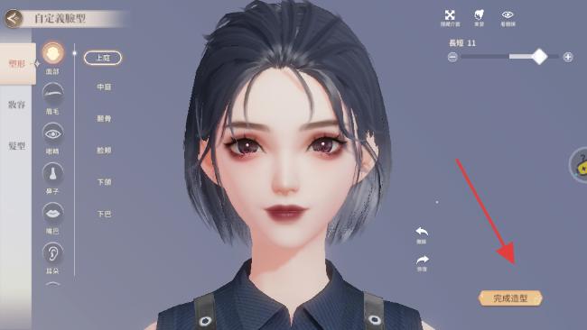 1、进入自定义捏脸界面,从发型五官到面部细节,逐项调整参数塑造专属形象,完成后点击完成造型保存。