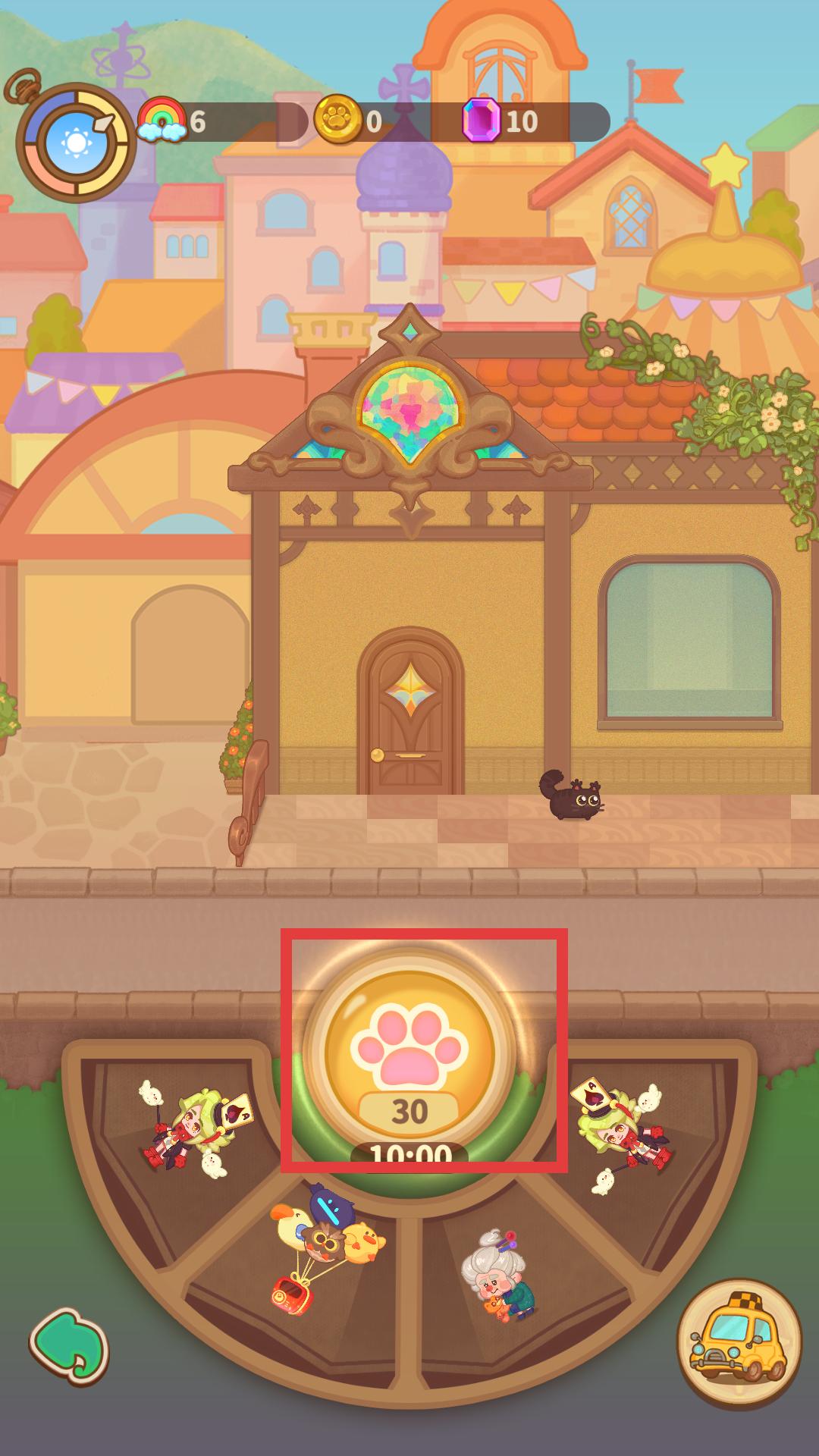 3、在游戏界面下方,找到带有粉色爪印图标的按钮,点击它即可触发特定的游戏功能,可能会带来新的任务或奖励。