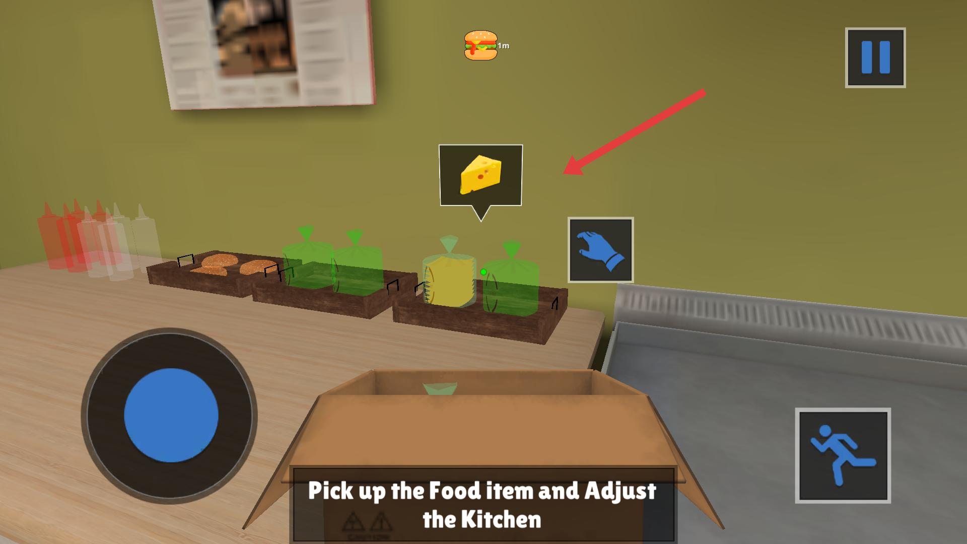 2、收集完食材玩家需前往厨房区域,按照提示拿起对应的食物物品,对厨房的布局和设备进行调整,使其满足餐厅运营需求。