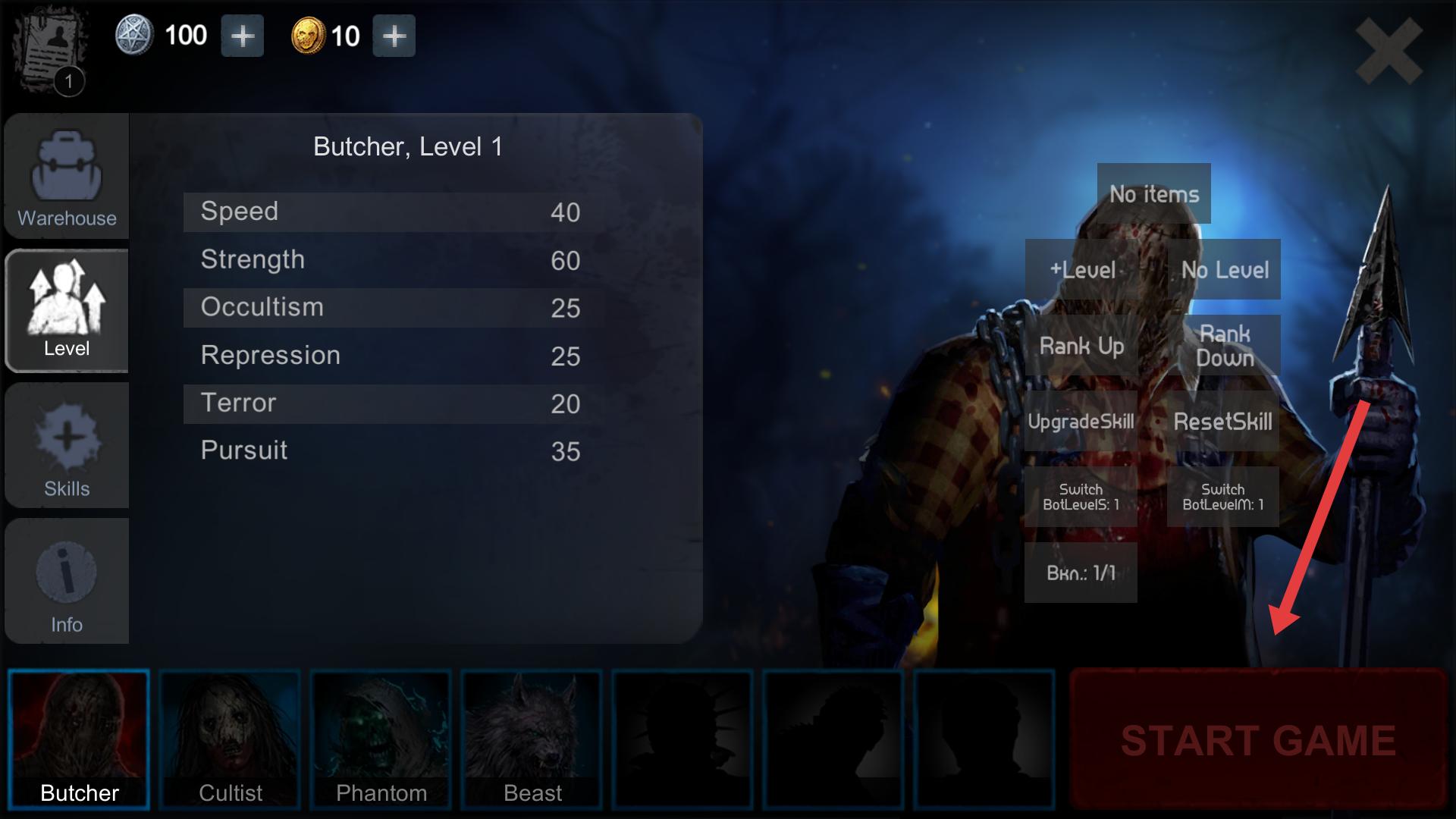 1、在角色选择界面,选定如Butcher等角色,查看其属性后点击开始游戏,进入逃生场景。