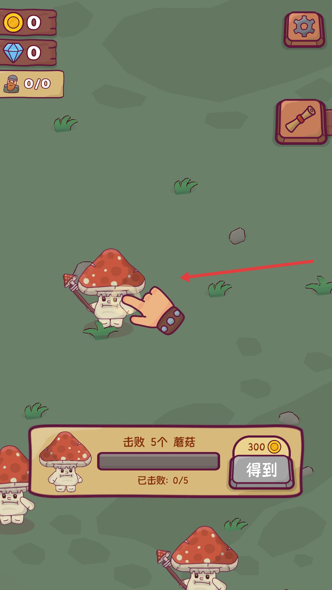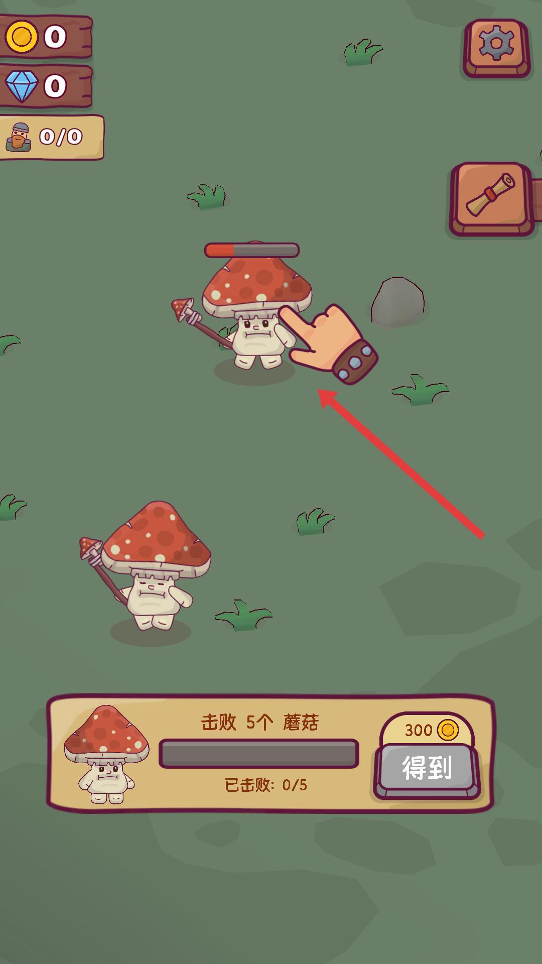 3、战斗过程中持续点击蘑菇,对其造成伤害,直至蘑菇的血量耗尽,成功击败蘑菇,完成部分任务进度。