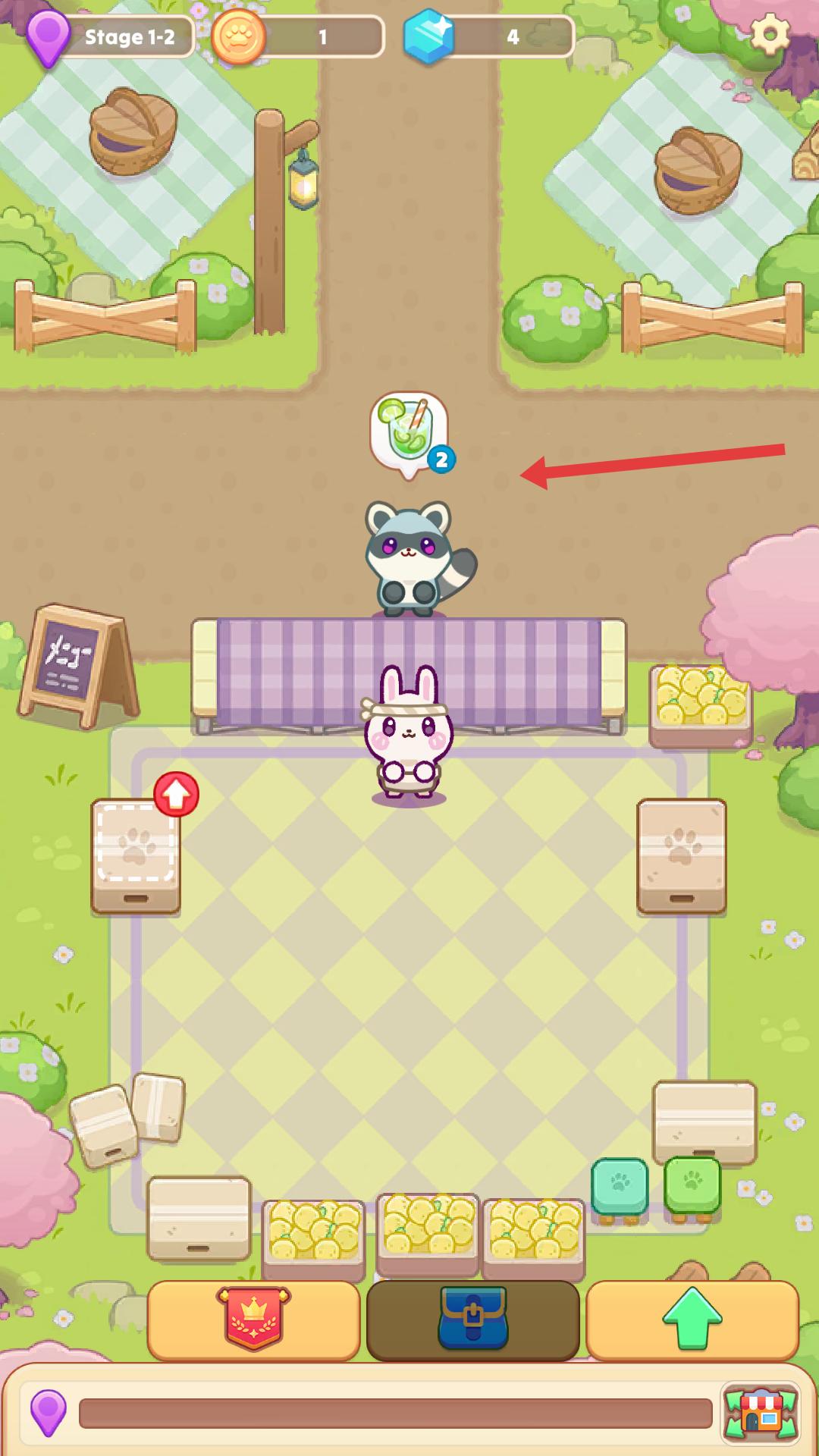 3、在经营场景中会有浣熊等顾客出现,根据顾客需求,提供对应的饮品等商品,满足顾客需求来推进游戏进程。