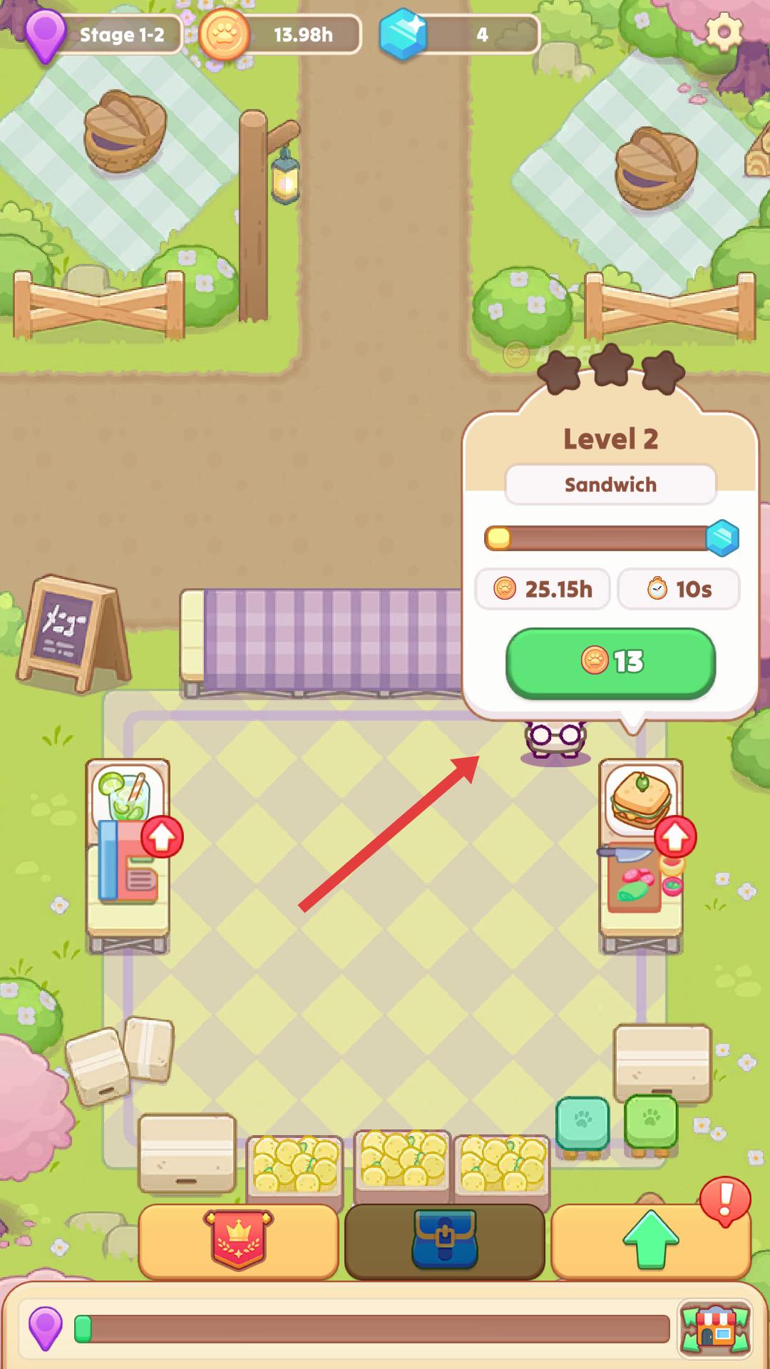 4、随着游戏发展,解锁三明治等新的生产项目,点击相关生产按钮,进行新物品的生产,不断丰富可生产的商品种类。