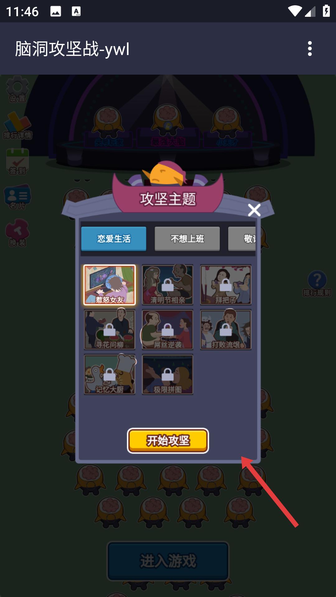 1、选择攻坚主题和具体关卡,如惹怒女友关卡,点击开始攻坚进入游戏。