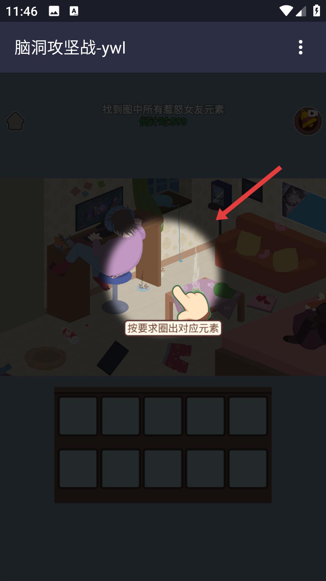 3、持续在画面中寻找所有符合要求的元素,依次圈出,同时留意下方的元素列表,核对已找到的元素。