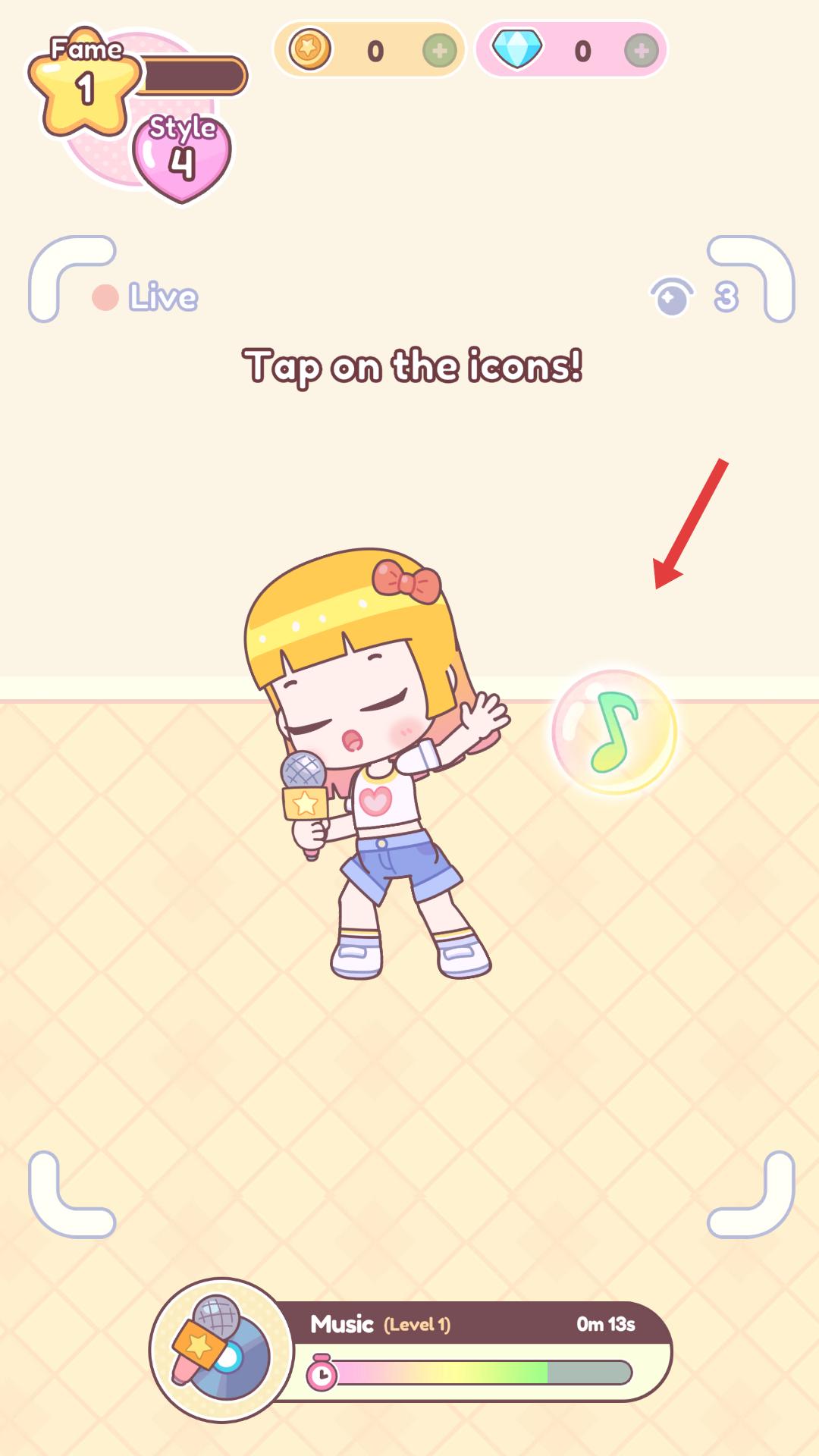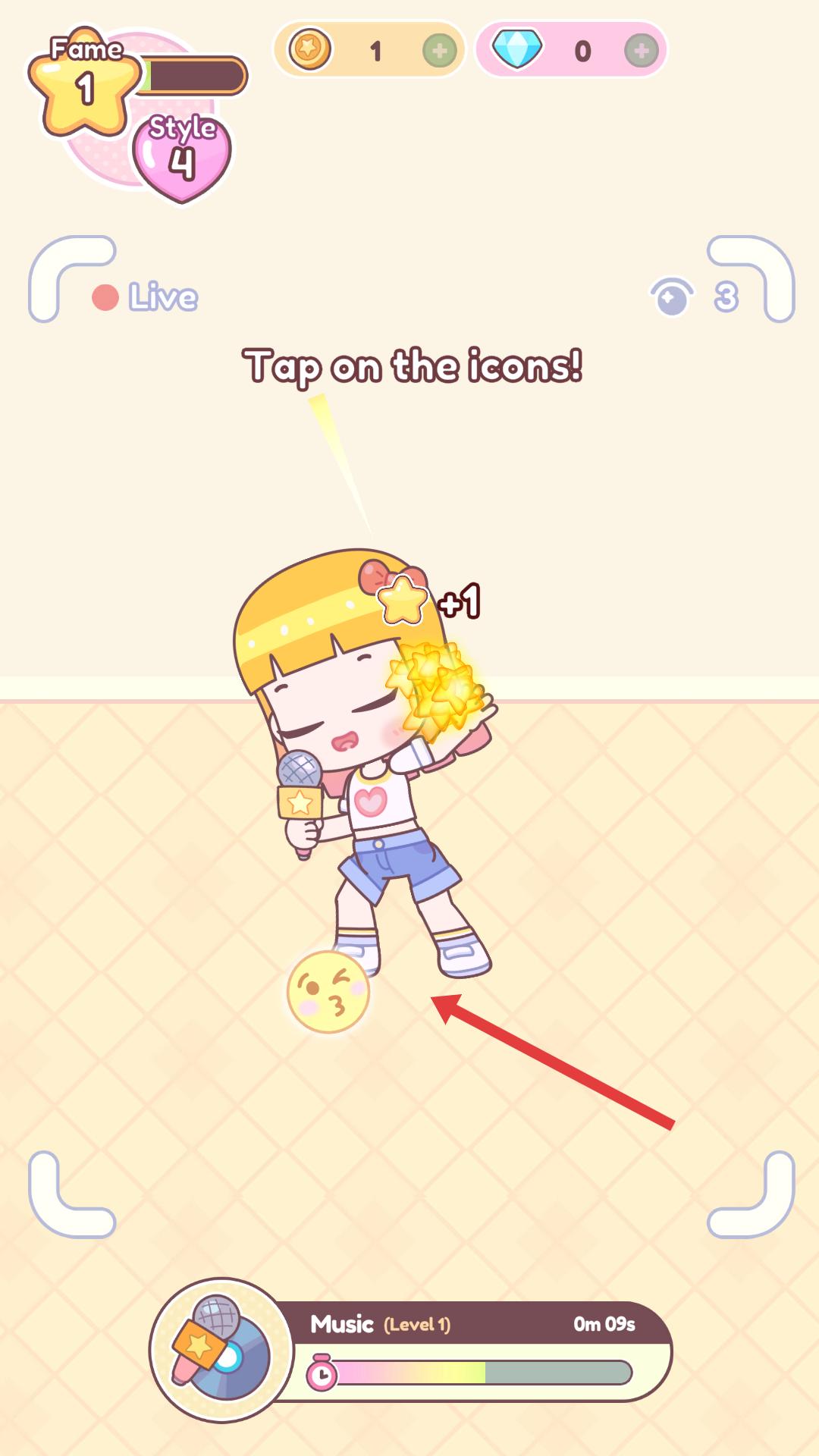 2、持续点击图标,获取星星和金币等奖励,提升直播的热度和收益。