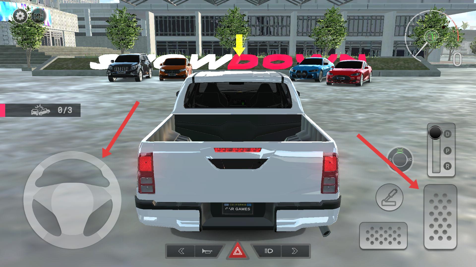 1、操控车辆移动,通过方向盘和踏板控制方向与速度,在场景中行驶,留意周围的车辆和环境。