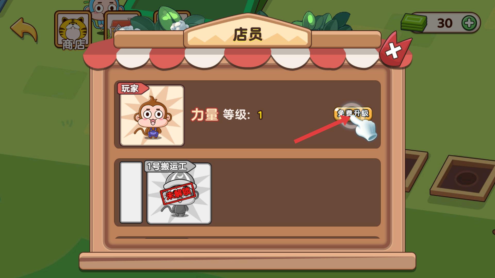 2、进入店员界面,对店员进行升级,提升店员的能力,如力量等,以便更好地开展店面经营和货物搬运活动。