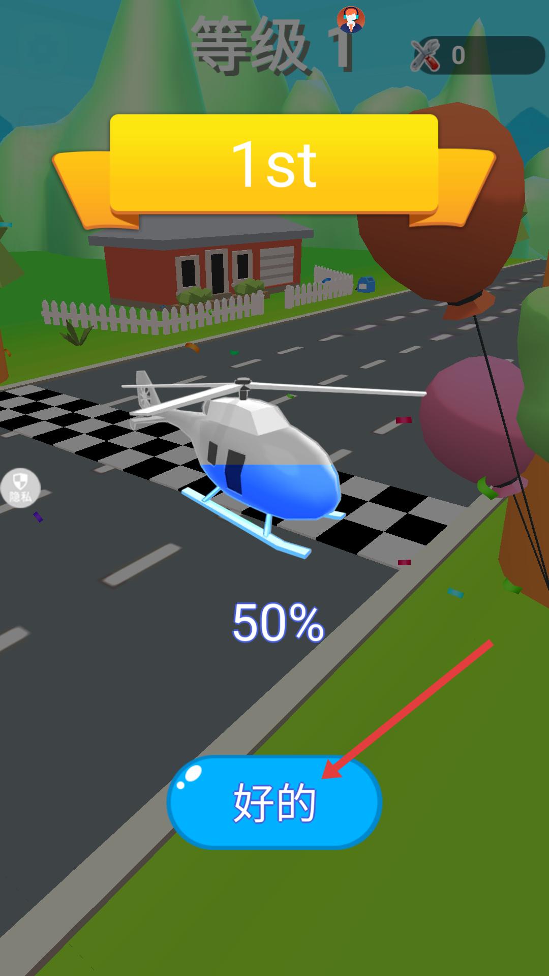4、率先到达终点,获得第一名,点击好的按钮,完成关卡,可进入下一级继续挑战,解锁更多形态和关卡。