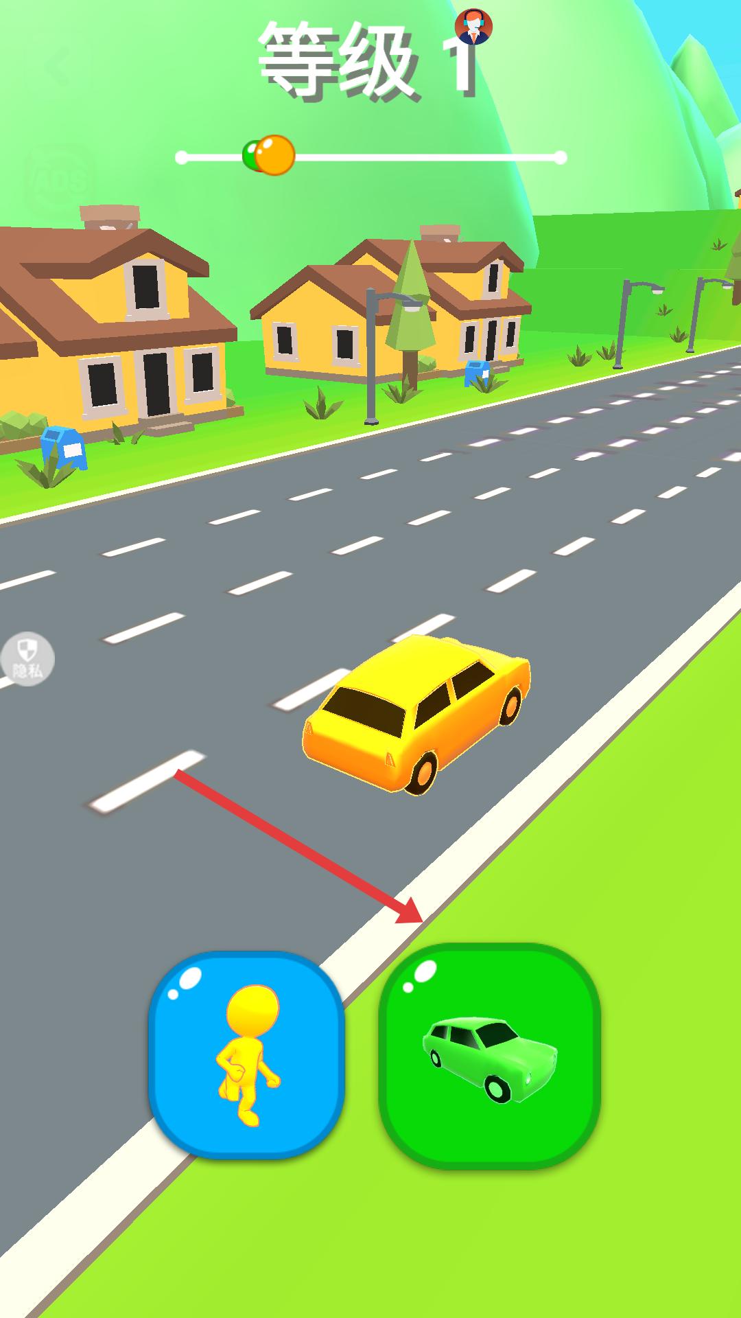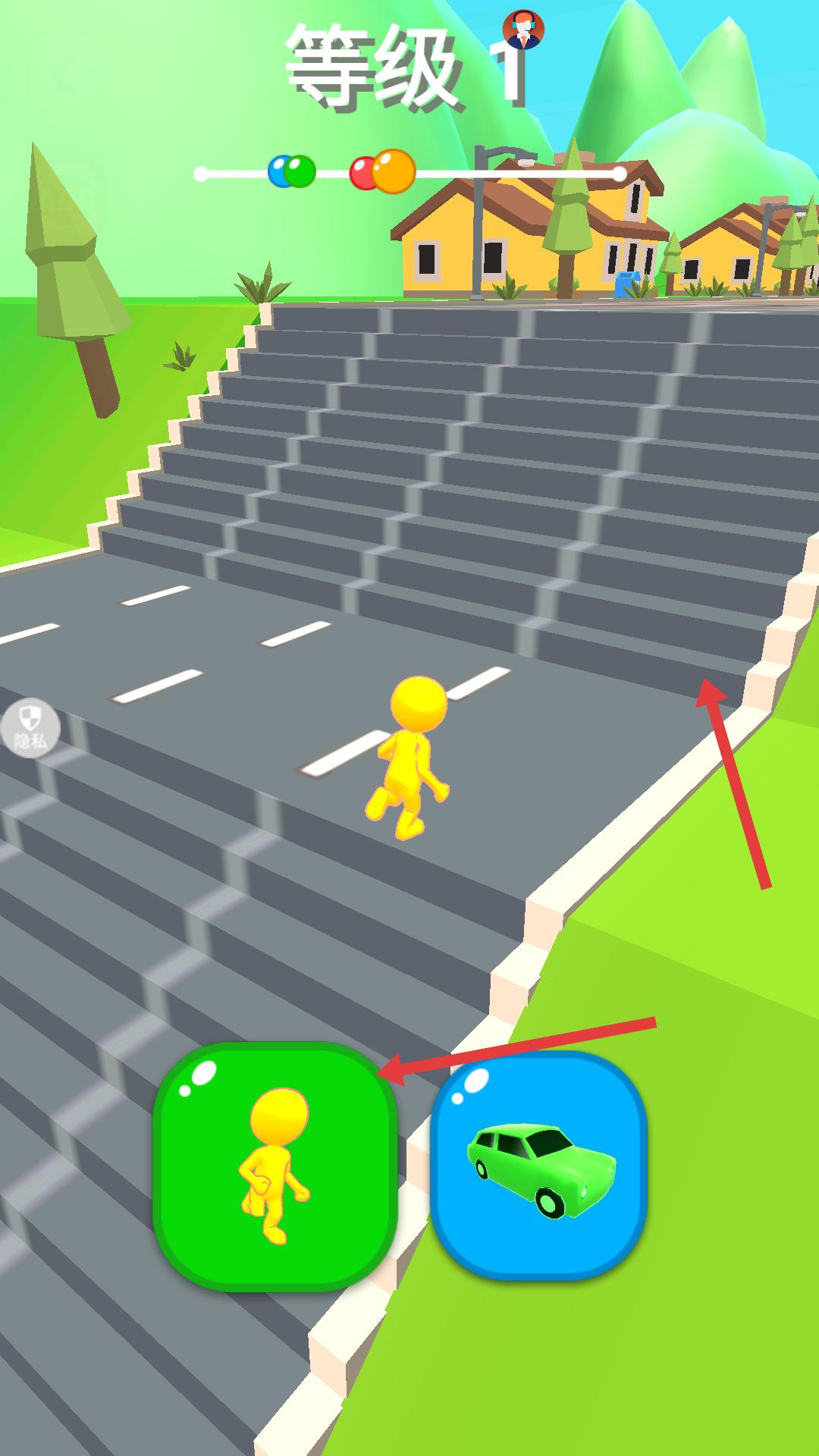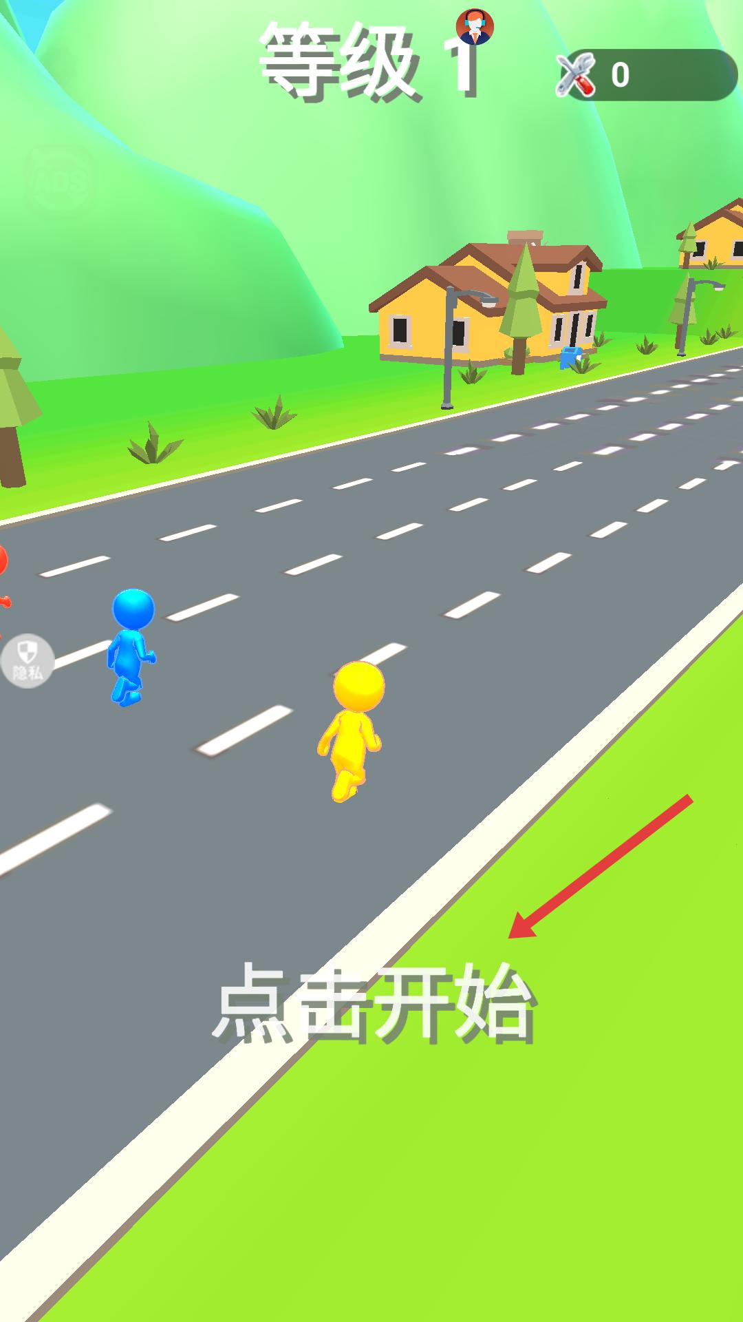1、点击开始,进入游戏场景,操控角色在道路上奔跑,初始为小人形态,需躲避其他角色和障碍物。
