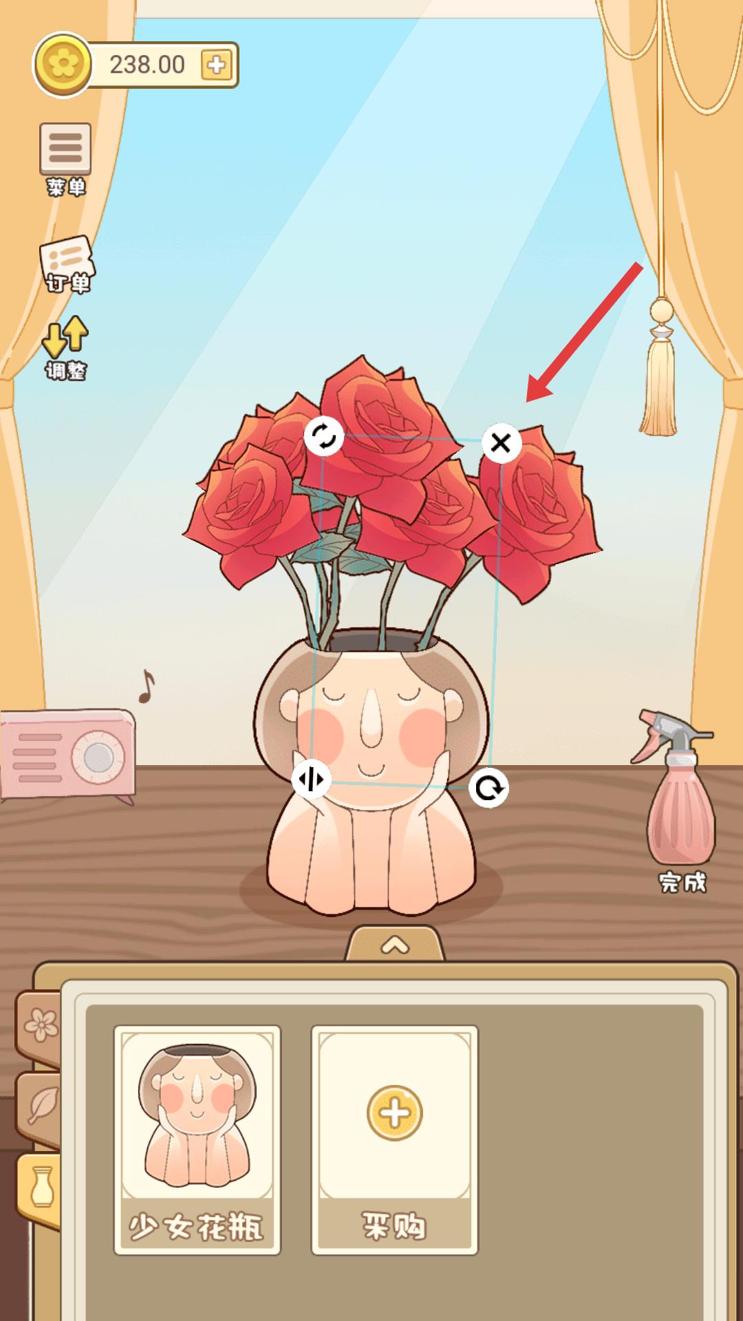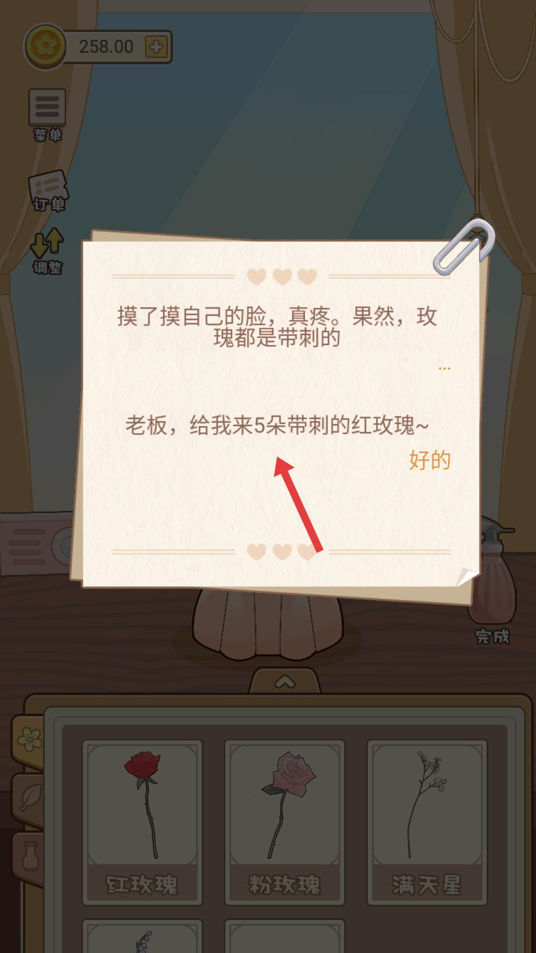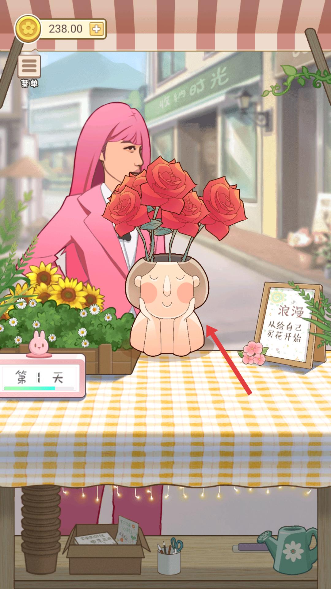 4、完成花束制作后,将其展示在摊位上,等待客户前来购买,获取收益,推进游戏进程。