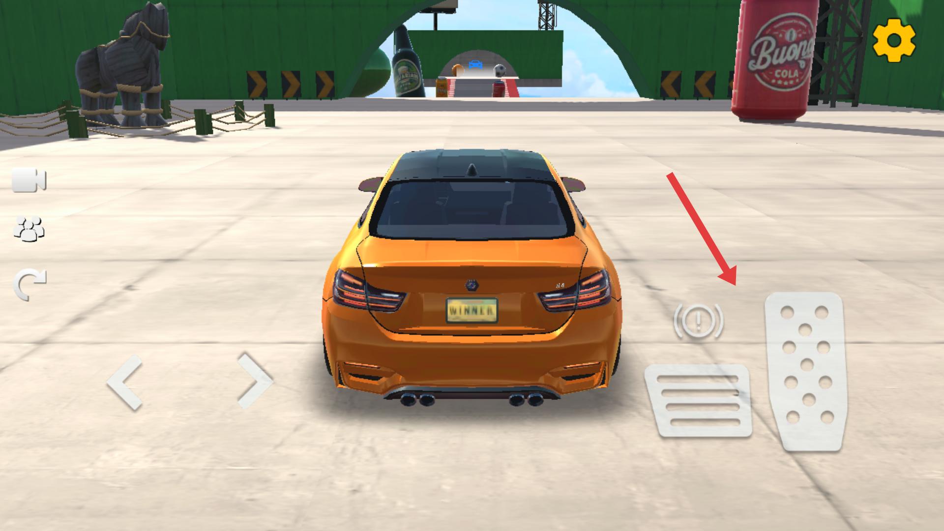 2、通过操作油门和刹车,控制赛车速度,在赛道上灵活移动,躲避障碍。