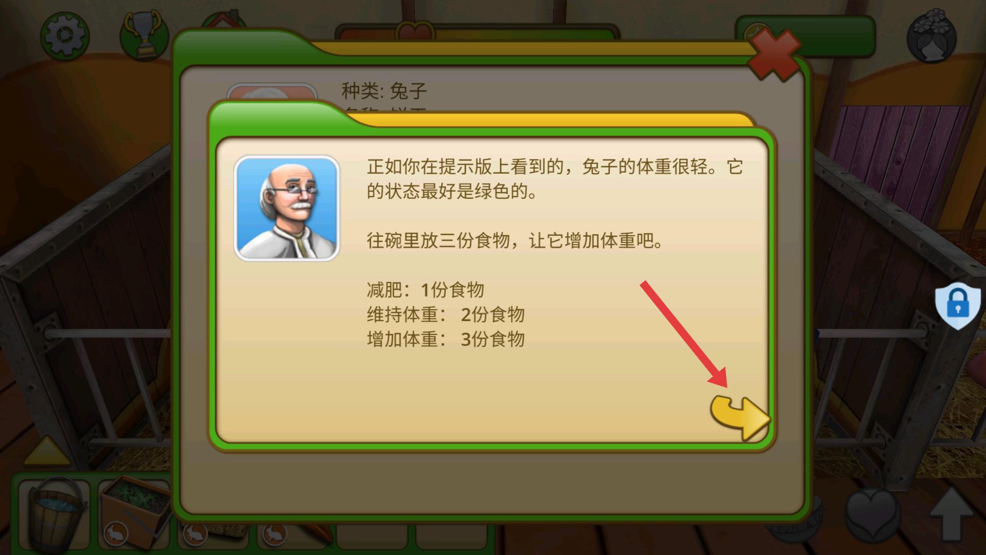 3、查看诊断说明后,根据兔子的体重情况,确定需要投放的食物份数,为后续喂食做准备。