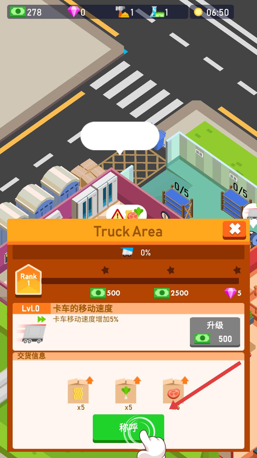 2、调用卡车运输食材,确保店铺食材供应充足,维持正常经营,同时可升级卡车速度提升运输效率。