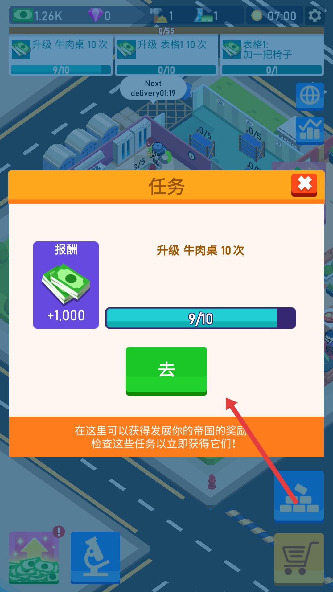 4、完成系统发布的任务,如升级设施次数等,领取任务奖励,积累资金用于店铺的进一步发展。