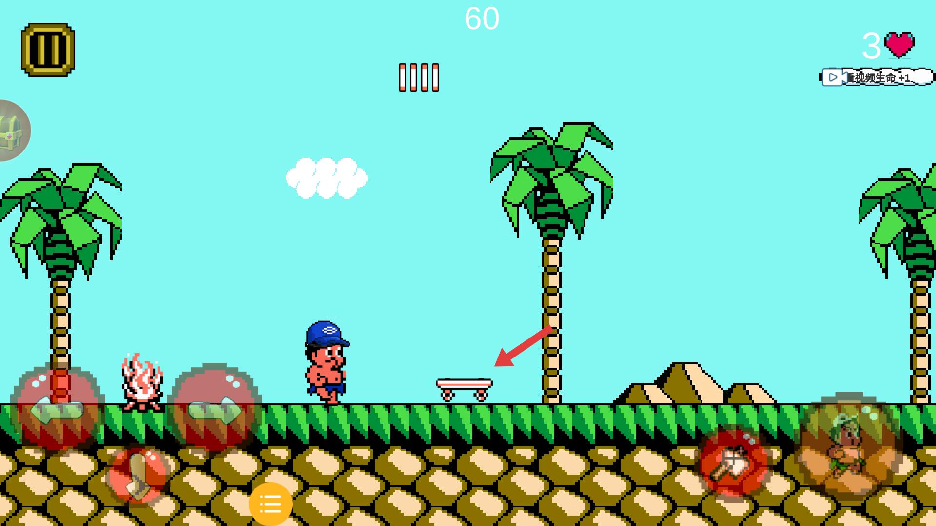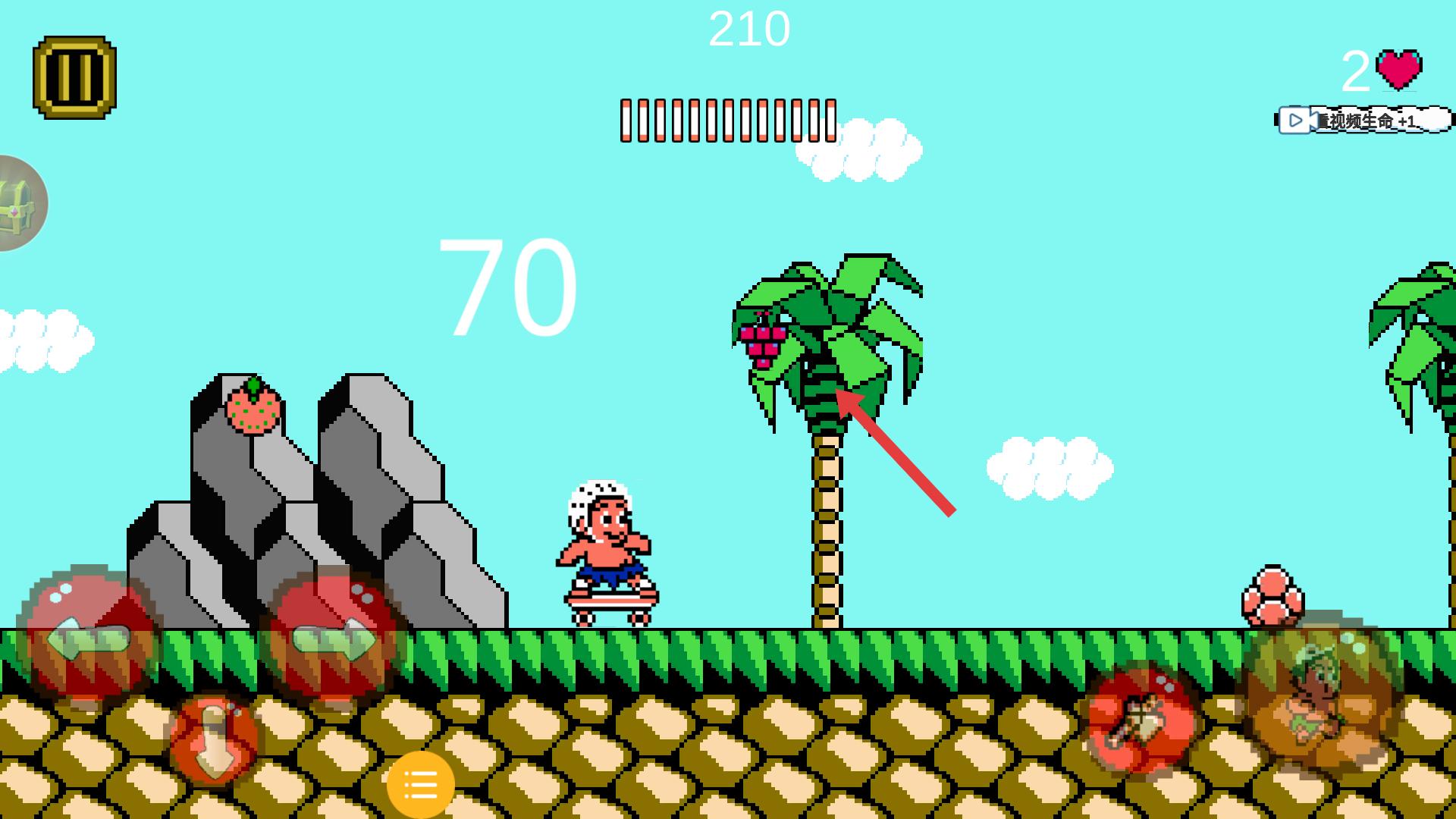 4、注意收集棕榈树上的果实等物品,不断积累分数,完成关卡目标,推进游戏进程。