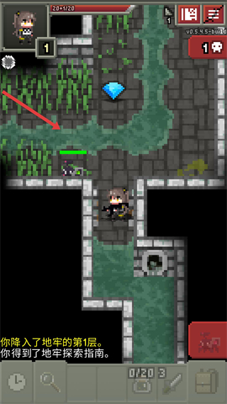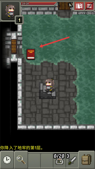 1、移动角色靠近红色书籍,获取地牢探索指南,为后续探索地牢做好准备。