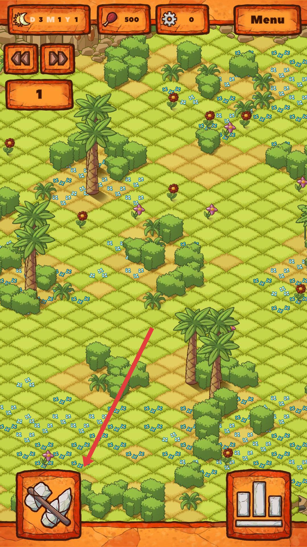 3、在游戏场景中可点击下方工具按钮,使用工具进行资源采集、环境改造等操作,获取发展所需的各类资源。
