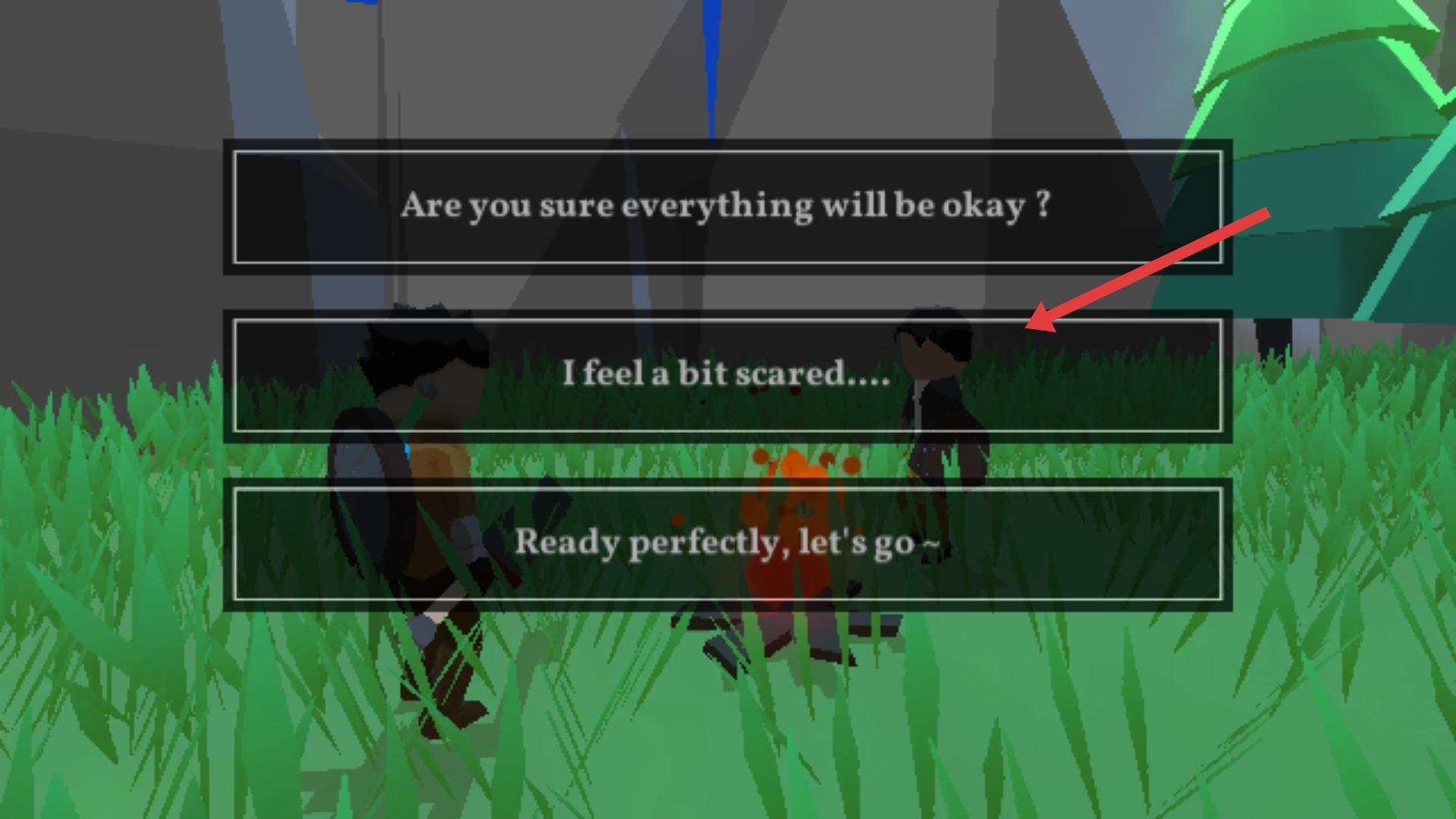 2、遇到剧情选择界面,阅读提示文字,从给出的回应中选其一,推动故事朝着所选方向发展。