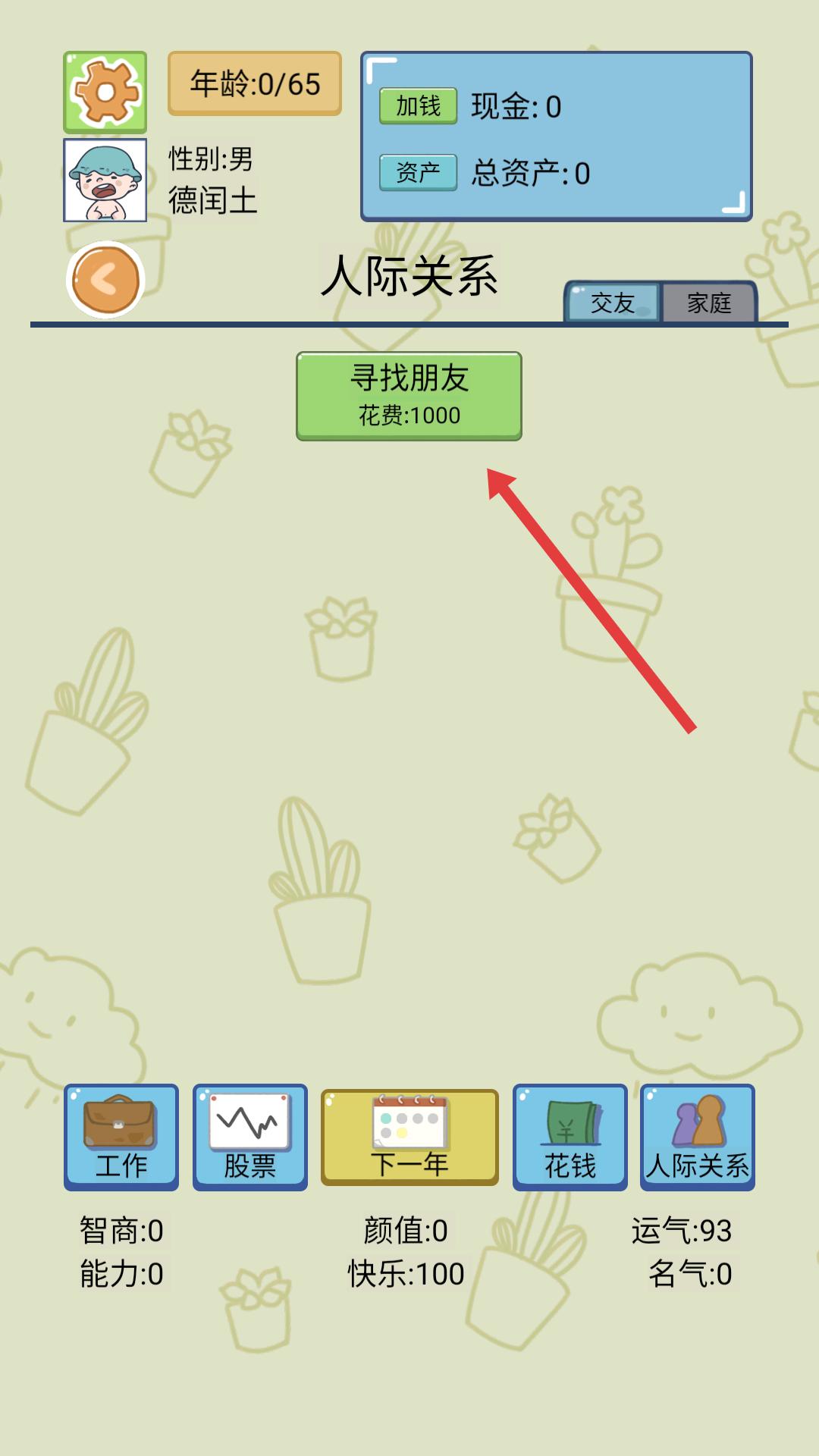 3、在人际关系板块,可花费一定金额寻找朋友,拓展社交圈,这或许会对后续游戏发展产生影响。