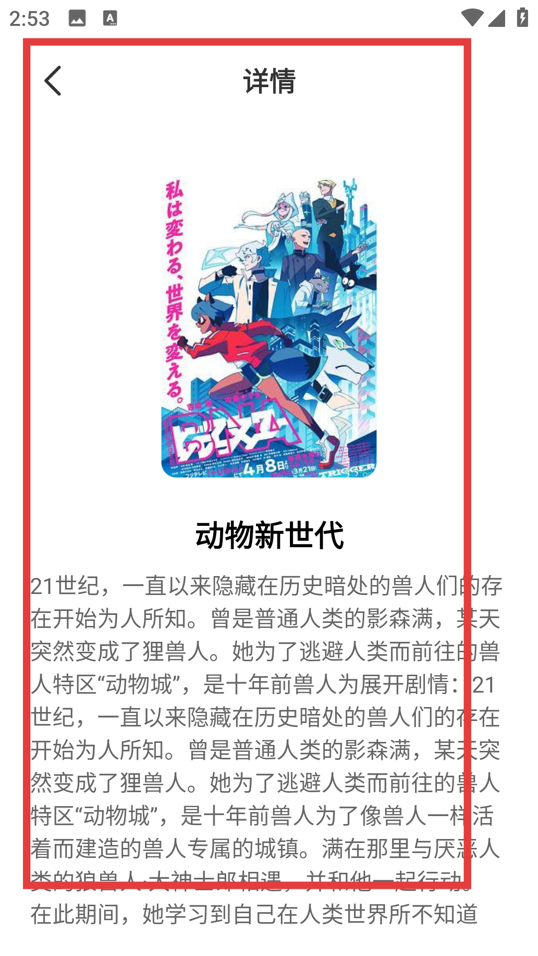 3、进入漫画详情页面后,页面展示漫画海报以及剧情介绍,浏览完详情后,返回软件主界面。