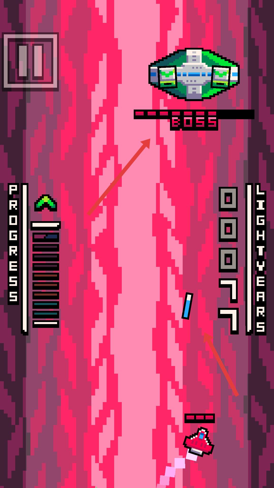 3、当遇到boss时,调整飞船的位置和飞行轨迹,与boss展开战斗,通过发射攻击等方式消耗boss的血量。