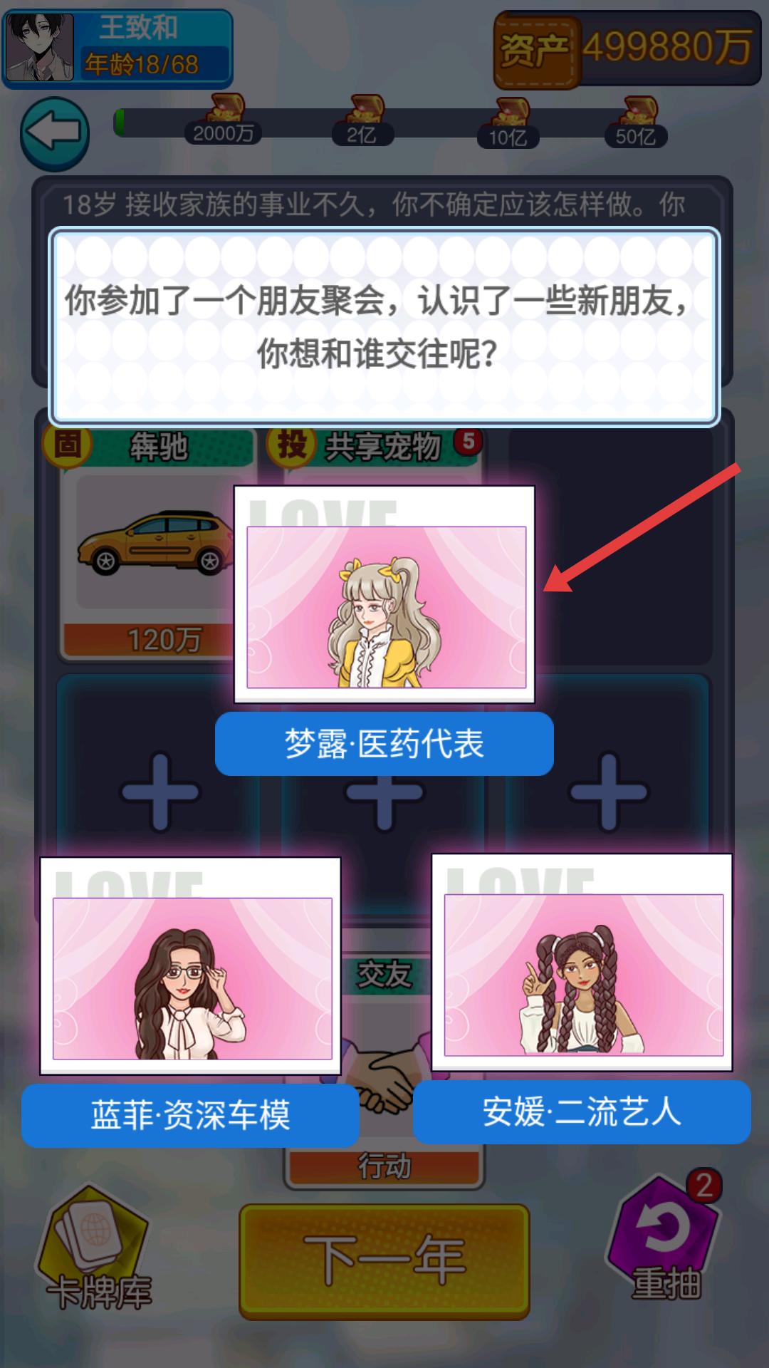2、参与朋友聚会等场景时,会出现不同人物,可挑选想要交往的对象,开启与该人物的互动。