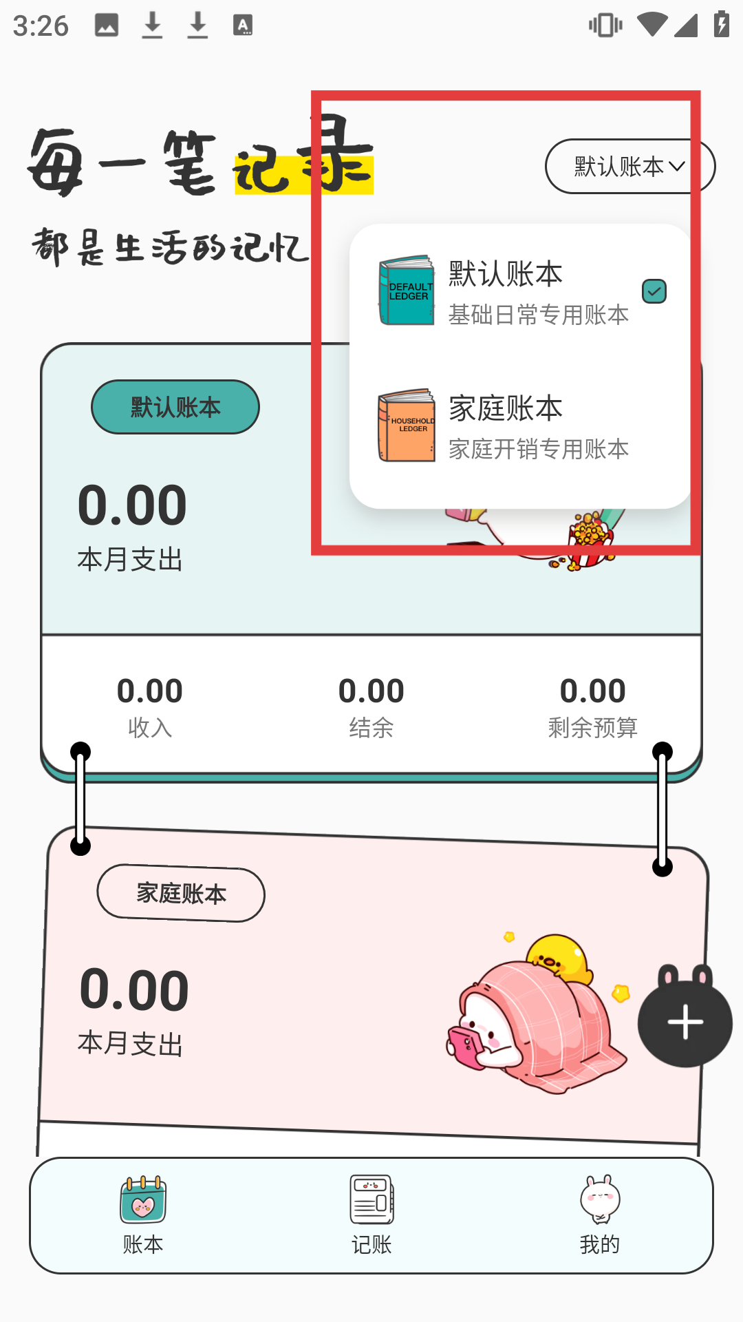 2、软件能切换账本,比如从默认账本切到家庭账本,不同账本对应不同用途,让日常和家庭开销分类更明确。