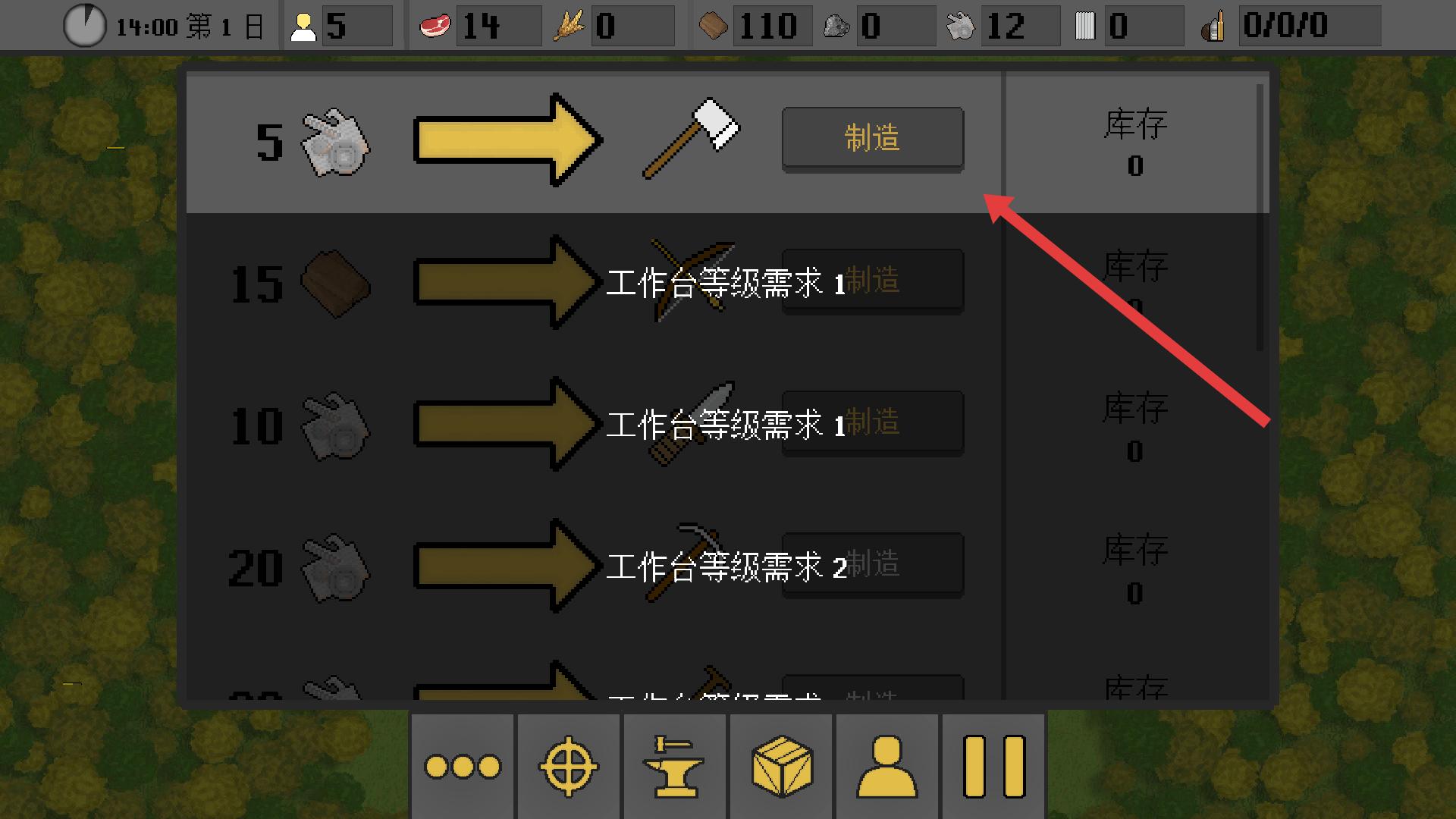 3、然后在制作界面中选择想要制造的工具,比如斧头,当材料足够时,点击制造按钮,就能成功制作出斧头。