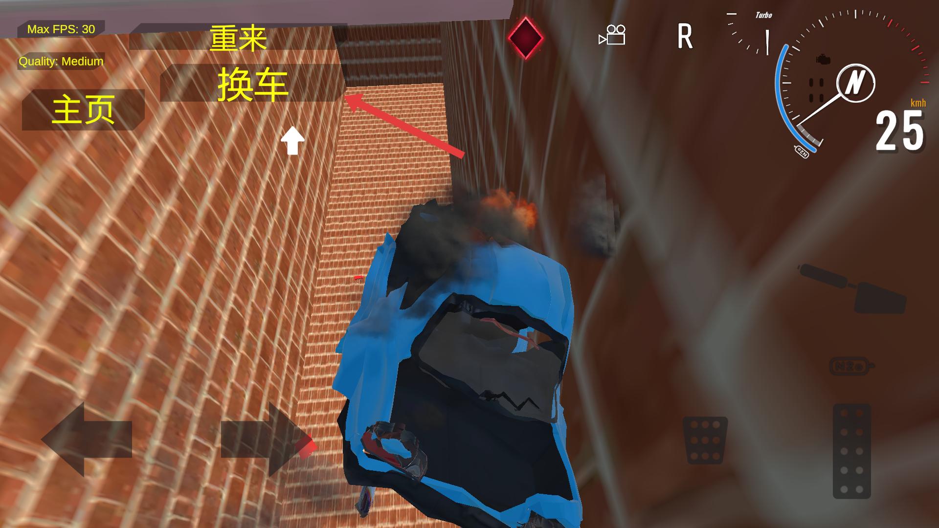 4、若车辆损坏严重或挑战失败,可选择换车或重来,更换车辆或重新开始挑战,继续在游戏中驾驶探索。