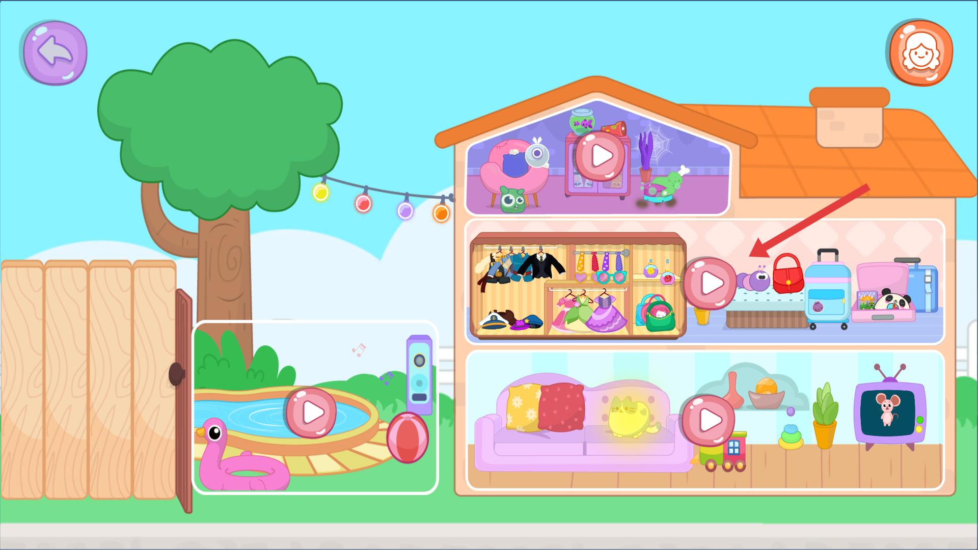 1、选择不同的场景区域,如房屋内的不同楼层或室外区域,进入该场景进行探索和互动。