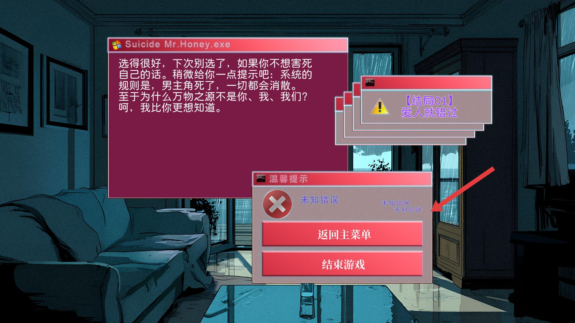 2、若选择的选项导致结局,可根据提示返回主菜单,重新选择选项,探索不同的剧情走向。