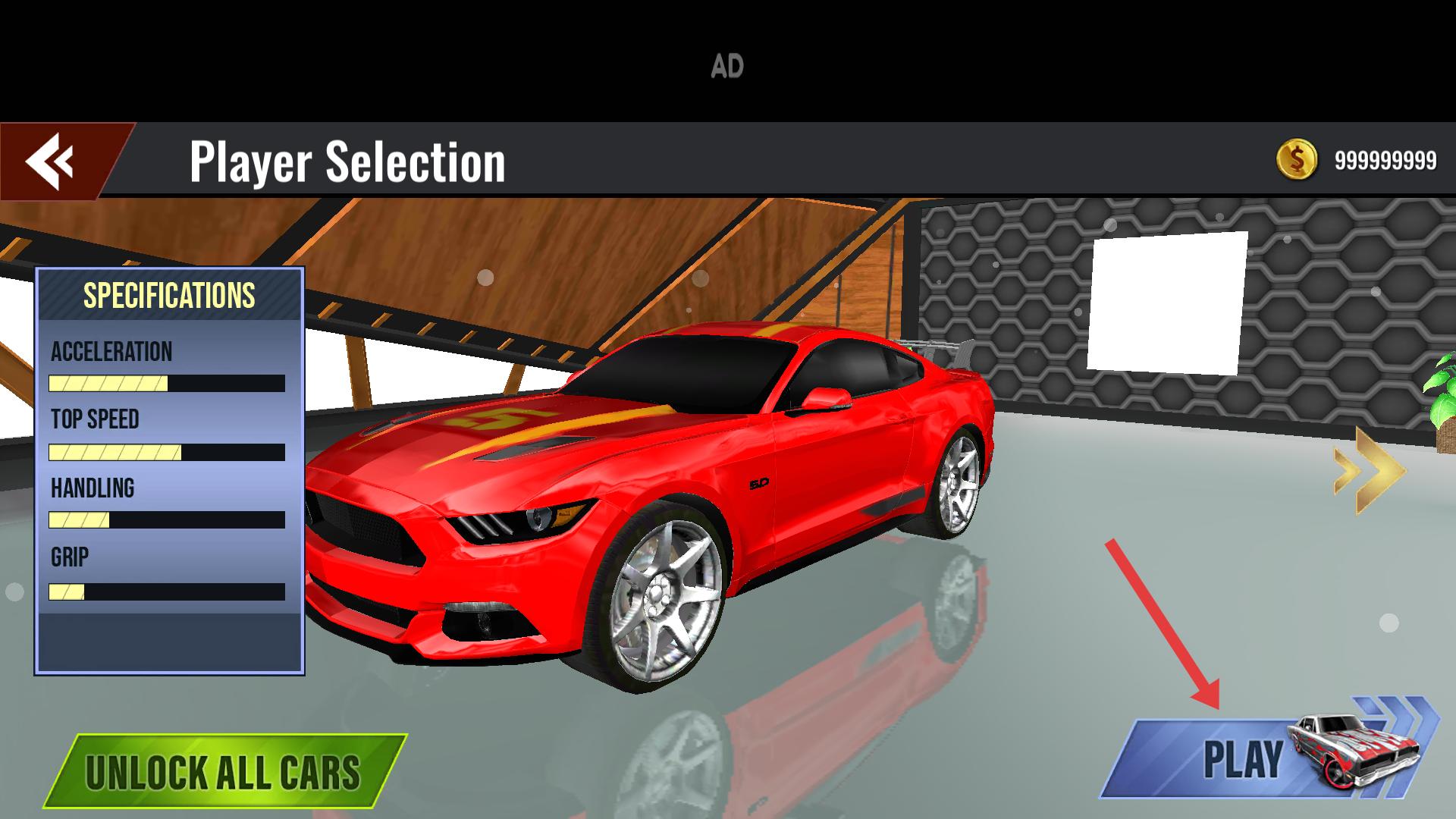 1、在车辆选择界面,挑选心仪的赛车,查看其各项性能,然后点击开始按钮,进入赛车关卡。