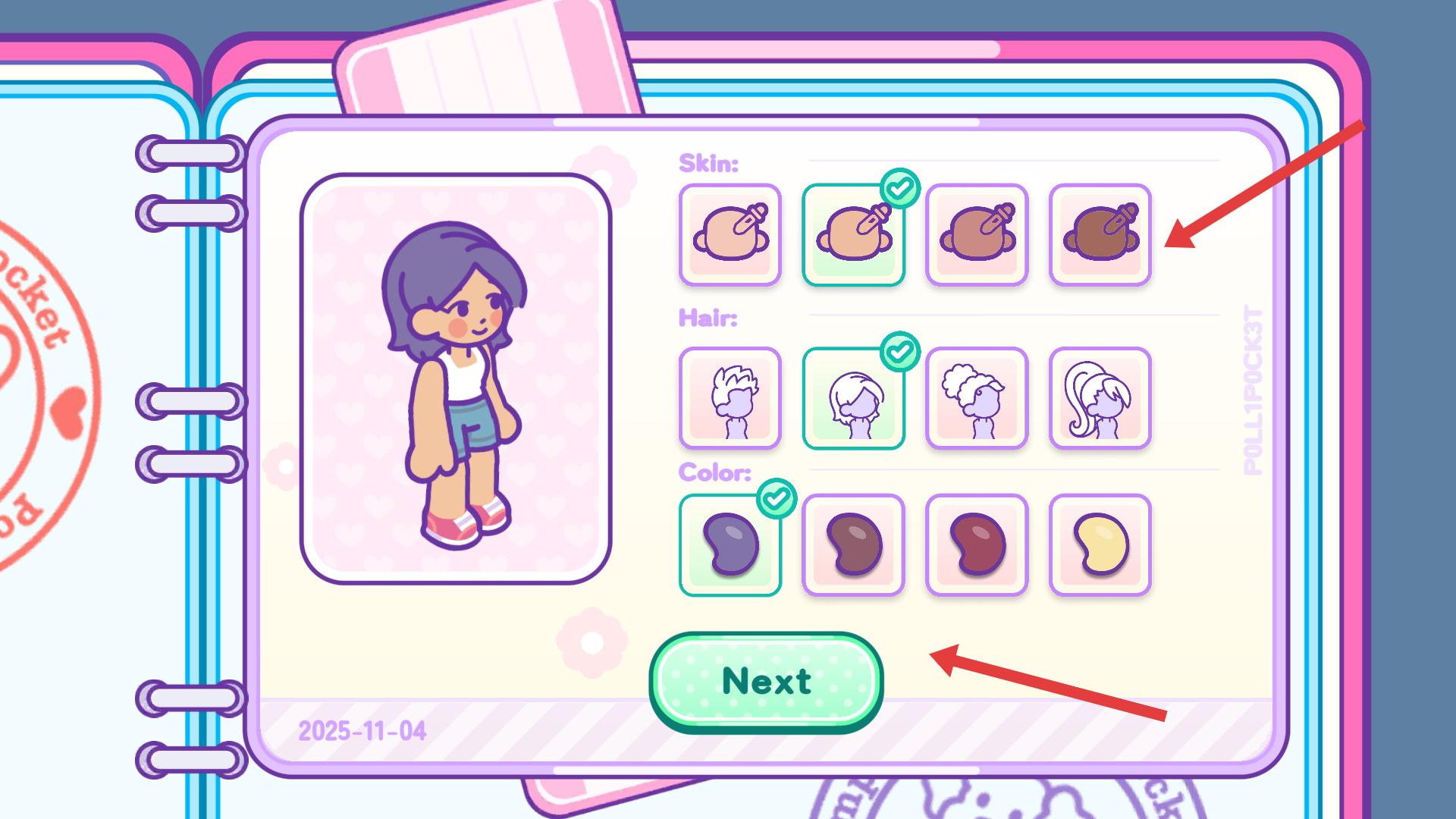 1、首先进行角色定制,可选择不同的皮肤、发型和颜色,打造出自己喜欢的角色形象,完成后进入游戏。