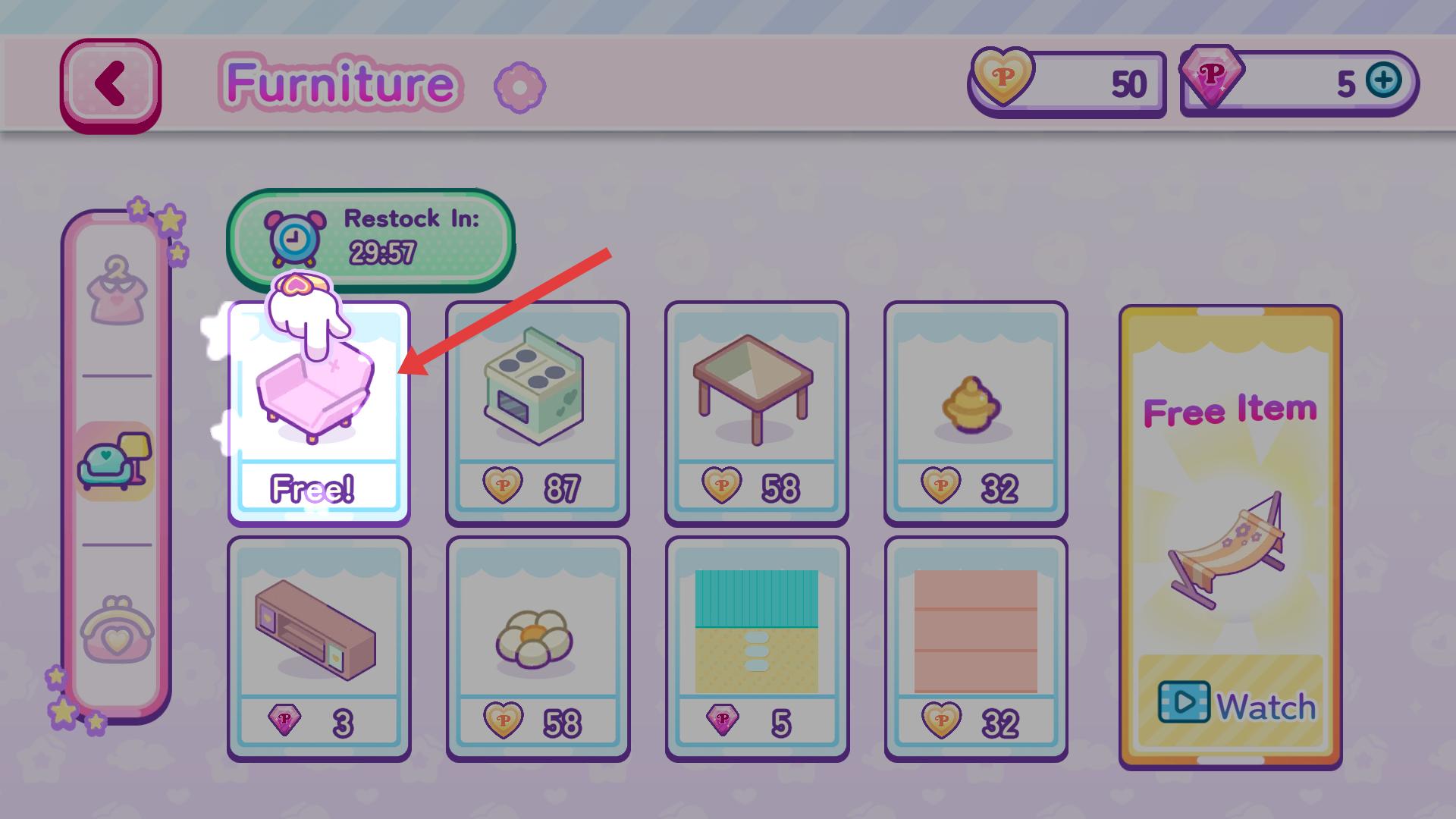 3、可挑选各种家具,有的家具可免费获取,有的需要用游戏内货币购买,以此来丰富空间布置。